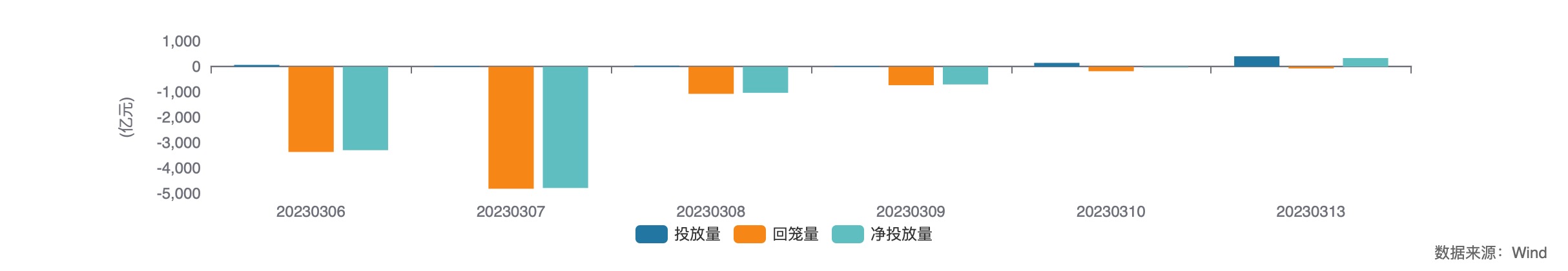 從近期公開市場(chǎng)操作來(lái)看,上周央行逆回購(gòu)?fù)斗帕看蠓陆?,持續(xù)回籠資金。前四個(gè)交易日(3月6日至3月9日)逆回購(gòu)單日操作規(guī)模不足百億元,分別為70億元、30億元、40億元、30億元。3月10日操作規(guī)模又有所提升,為150億元。