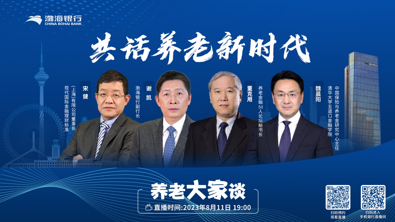 8月11日晚19:00,渤海銀行推出了“養(yǎng)老‘大家’談共話養(yǎng)老新時代”線上訪談節(jié)目,邀請現(xiàn)代國際金融理財標準(上海)有限公司董事長宋健教授擔綱對話主持人,與渤海銀行副行長謝凱先生、養(yǎng)老金融50人論壇秘書長董克用教授、清華大學五道口金融學院中國保險與養(yǎng)老金研究中心主任魏晨陽教授,共同圍繞養(yǎng)老熱點話題暢談各自專業(yè)見解。訪談受到公眾廣泛關注,節(jié)目線上觀看量將近100萬人次。