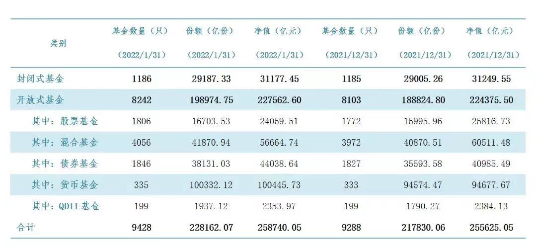 截至2022年1月底,我國(guó)境內(nèi)共有基金管理公司137家,其中,外商投資基金管理公司45家,內(nèi)資基金管理公司92家;取得公募基金管理資格的證券公司或證券公司資產(chǎn)管理子公司12家、保險(xiǎn)資產(chǎn)管理公司2家。