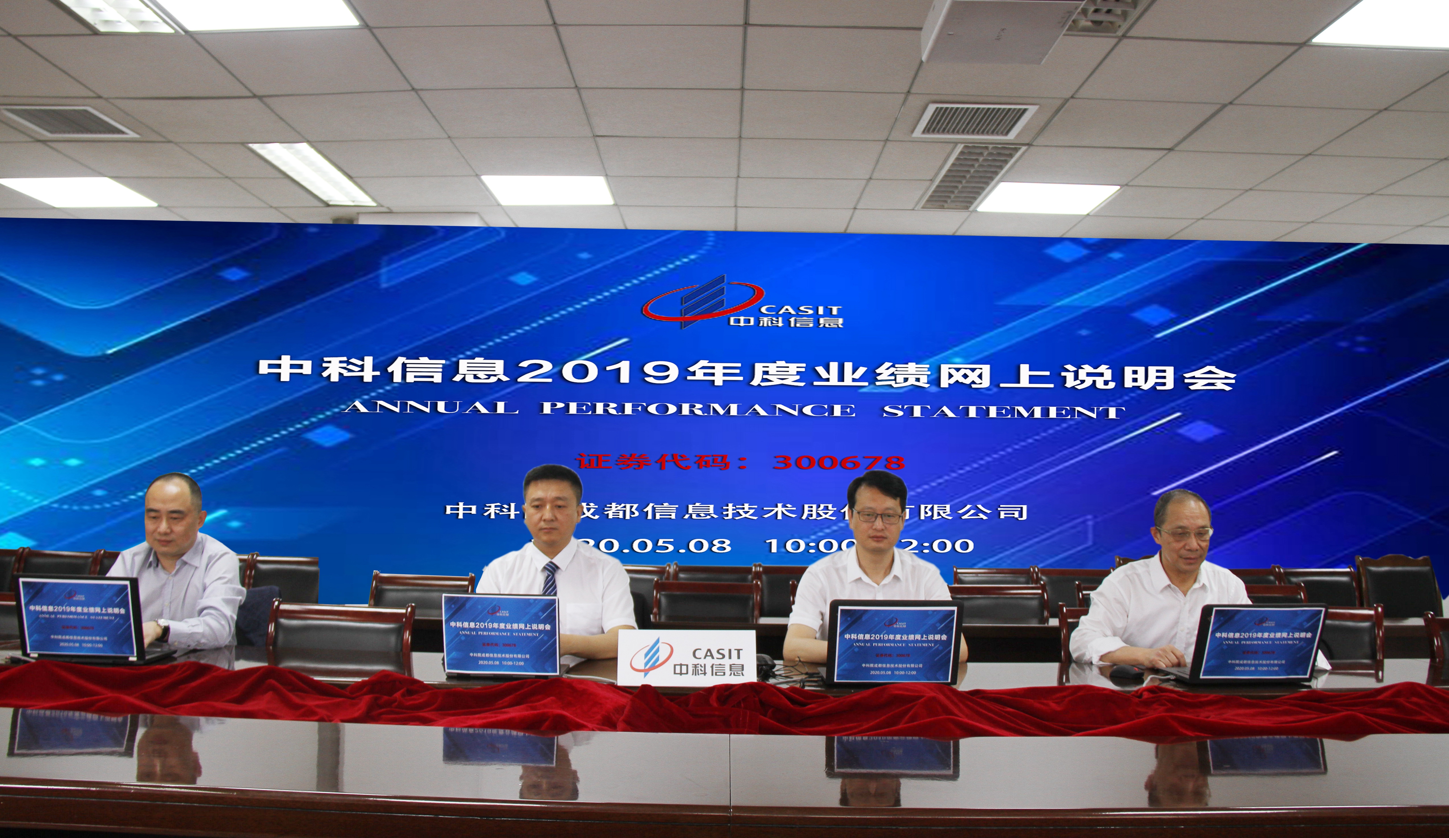 5月8日,中科院成都信息技術(shù)股份有限公司(以下簡(jiǎn)稱“中科信息”)2019年度業(yè)績(jī)網(wǎng)上說(shuō)明會(huì)在全景網(wǎng)路演天下平臺(tái)舉行。公司董事長(zhǎng)兼總經(jīng)理史志明率領(lǐng)高管團(tuán)隊(duì)與投資者進(jìn)行了在線互動(dòng)。