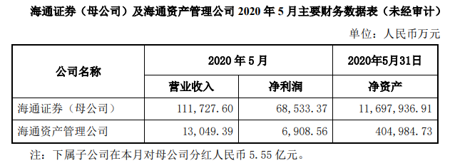 目前來看,海通證券5月份凈利潤領(lǐng)先,為7.54億元。海通證券月報(bào)顯示,下屬子公司在5月份對母公司分紅5.55億元。