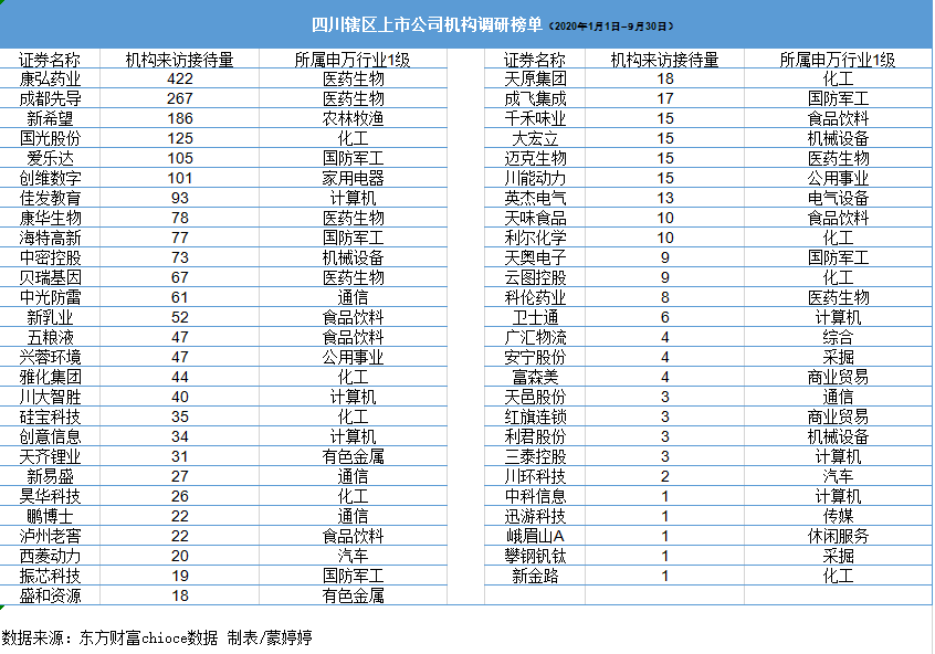 A股超50家川企獲機(jī)構(gòu)密集調(diào)研 康弘藥業(yè)斬獲前三季度機(jī)構(gòu)調(diào)研榜首