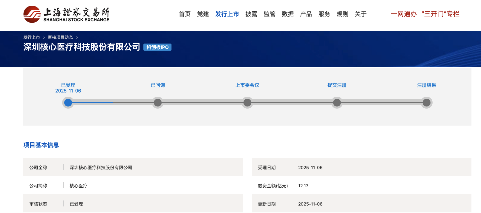 本報(bào)訊 (記者毛藝融)11月6日,深圳核心醫(yī)療科技股份有限公司(以下簡稱“核心醫(yī)療”)科創(chuàng)板IPO申請獲上交所受理,成為重啟科創(chuàng)板第五套上市標(biāo)準(zhǔn)后,首家成功獲受理的創(chuàng)新醫(yī)療器械公司。