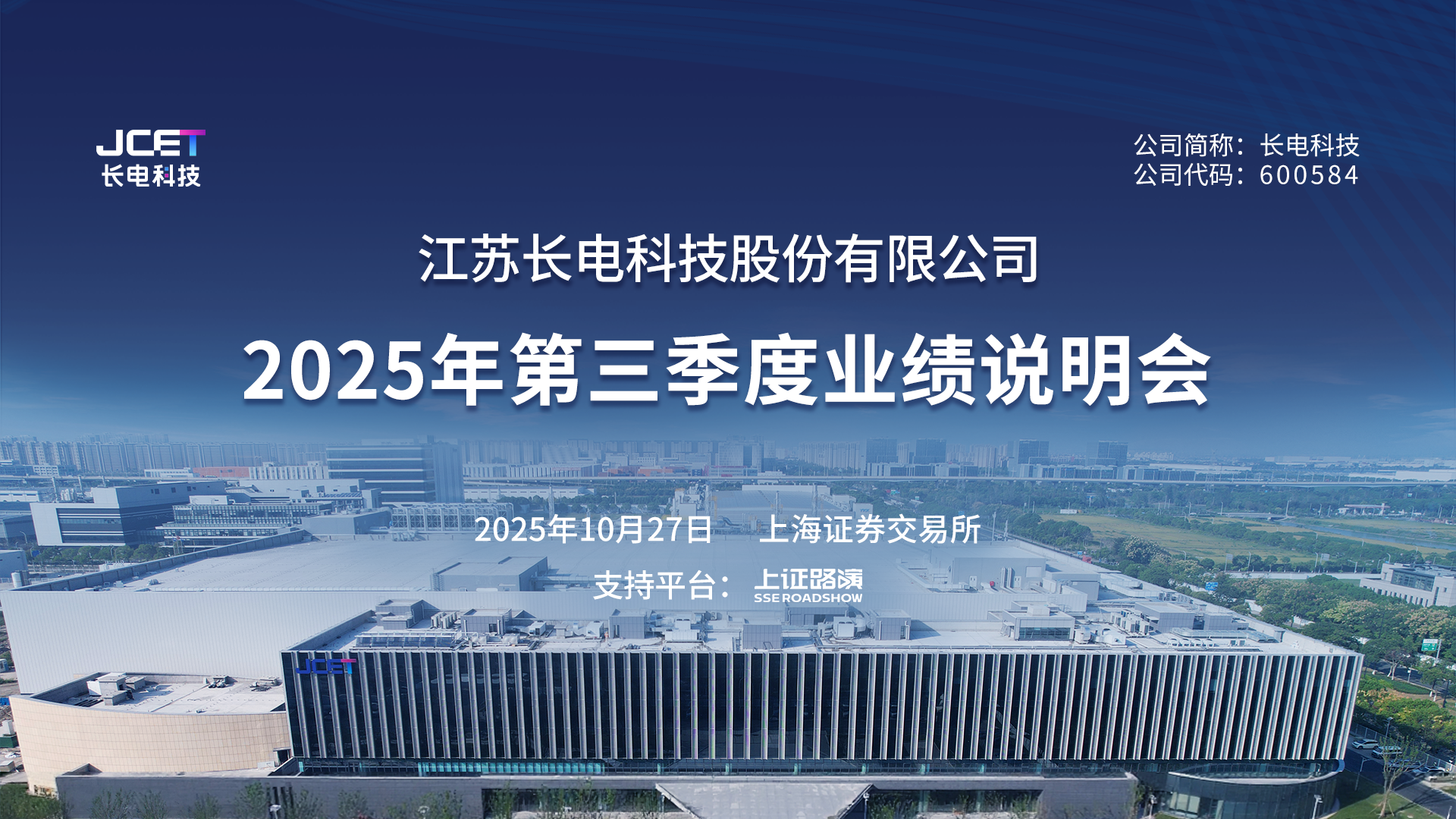 歡迎光臨證券日?qǐng)?bào)網(wǎng)。江蘇長(zhǎng)電科技股份有限公司2025年第三季度業(yè)績(jī)說明會(huì)將于2025年10月27日 15:30-17:00舉行。[詳細(xì)]