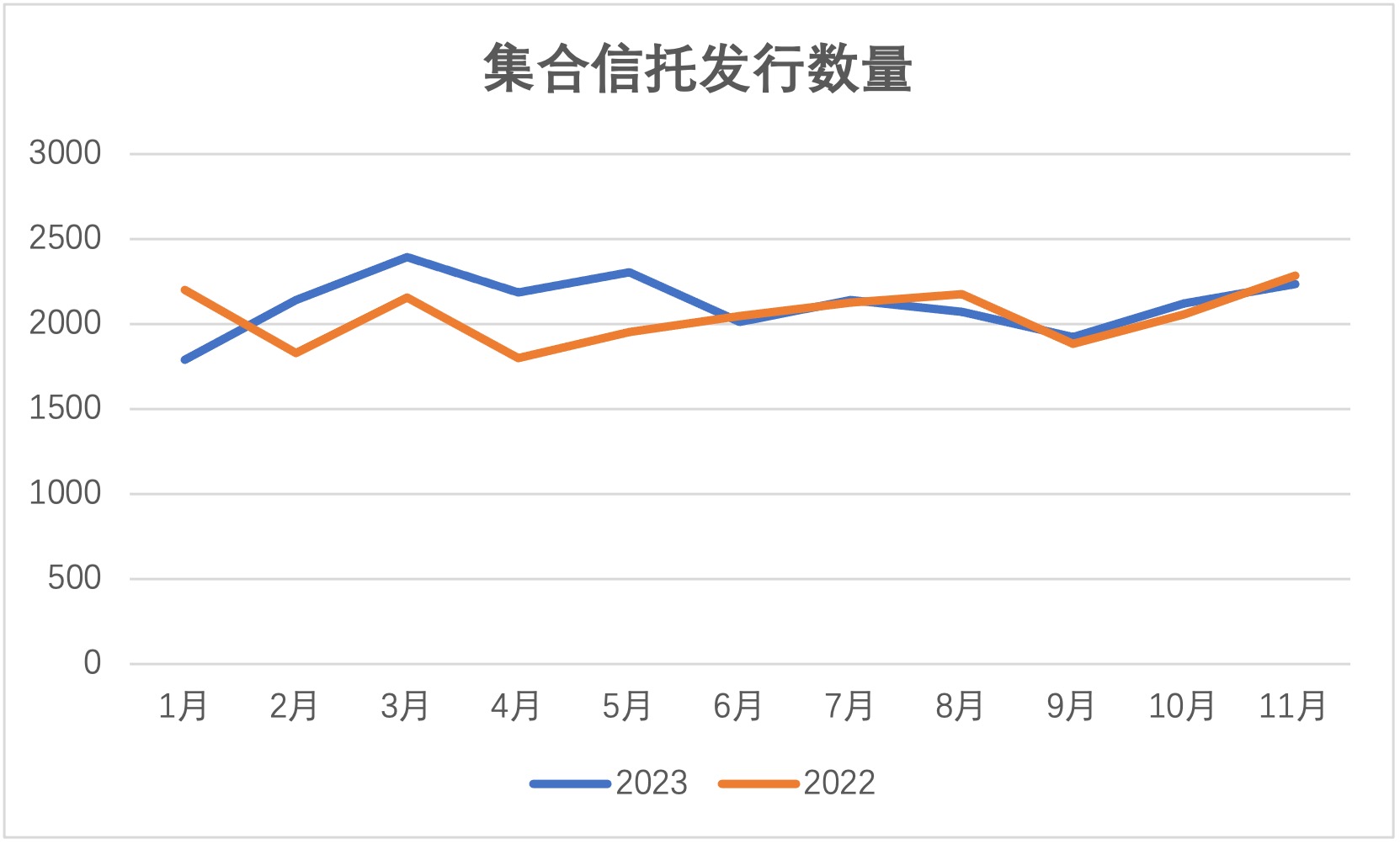 年內(nèi)數(shù)據(jù)來(lái)看,2023年上半年,集合信托產(chǎn)品發(fā)行數(shù)量整體高于去年同期,6月份以來(lái),各月份集合信托產(chǎn)品發(fā)行數(shù)量較去年同比基本持平。整體來(lái)看,2023年集合信托產(chǎn)品發(fā)行數(shù)量整體呈現(xiàn)穩(wěn)中有升的態(tài)勢(shì)。