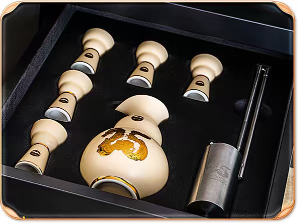 茅臺(tái)王子酒(25周年紀(jì)念)配備了設(shè)計(jì)精美的酒具。這些酒具以匠心打造,其中葫蘆分酒器,同時(shí)也是茶具中的公道杯,酒或茶倒出來之時(shí),寓意著“福到了”;乾坤杯,正放為茶杯(象征“坤”,地之沉穩(wěn)),倒置為酒杯(象征“乾”,天之靈動(dòng)),一器雙用,體現(xiàn)“陰陽相生”的哲學(xué)思想。品茗靜心、把酒言歡,皆能隨心切換,在器皿流轉(zhuǎn)間,感受傳統(tǒng)哲學(xué)和東方美學(xué)的當(dāng)代意境。