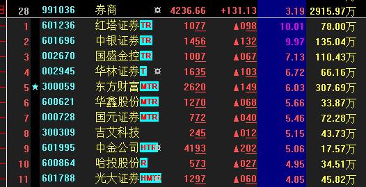 熱點三:券商板塊漲逾3%2股聯(lián)袂漲停