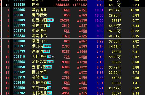 熱點二:白酒板塊漲幅達4.42%6股集體漲停