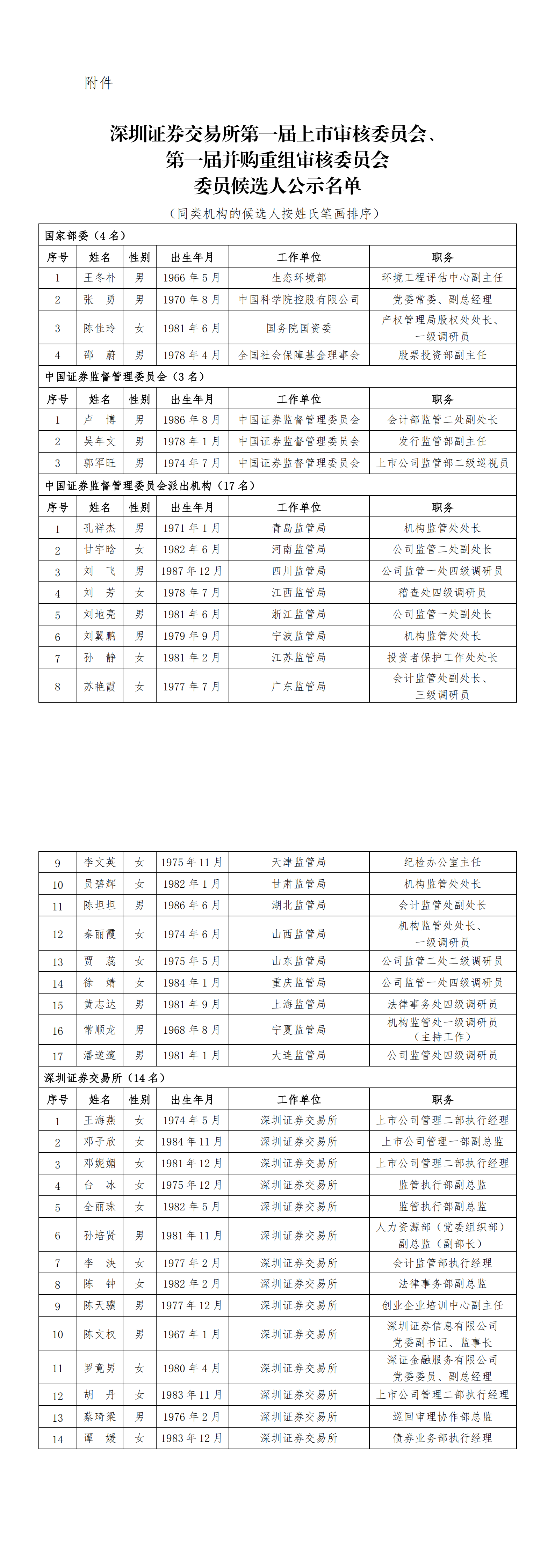 深交所表示,日前啟動了第一屆上市委、第一屆重組委組建工作。經(jīng)相關(guān)單位推薦、遴選委員會討論等程序,形成上市委、重組委委員候選人名單。為強(qiáng)化社會監(jiān)督,保障上市委、重組委選聘工作公開、公平、公正,現(xiàn)就委員候選人名單予以公示,公示期5個工作日。