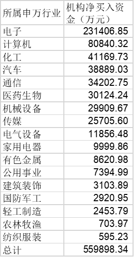 從行業(yè)屬性來看,上周機(jī)構(gòu)專用席位凈買入的74只個股中,流入電子與計算機(jī)行業(yè)的資金最高,分別達(dá)到23.14億元和8.08億元,合計31.22億元,占機(jī)構(gòu)買入總額的29.98%,即有近三成機(jī)構(gòu)專用席位凈買入資金流入電子與計算機(jī)行業(yè)。