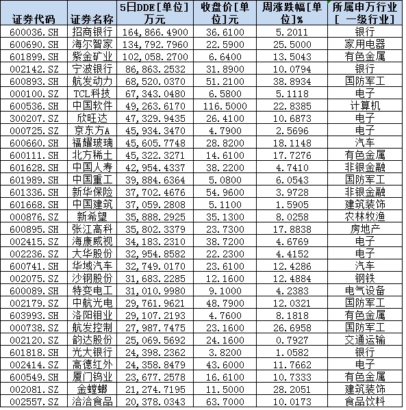 統(tǒng)計發(fā)現(xiàn),本周,有144只MSCI概念股呈現(xiàn)大單資金凈流入,其中,招商銀行、海爾智家、紫金礦業(yè)等3只概念股累計資金凈流入均超10億元,分別為16.5億元、13.5億元和10.2億元。另外,有339只MSCI概念股呈現(xiàn)大單資金凈流出。其中,資金凈流出超10億元的個股達29只,復(fù)星醫(yī)藥和財通證券期間資金凈流出金額居前,分別為66.3億元和40.4億元。
