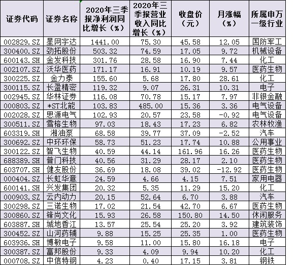 表:三季報(bào)凈利和營(yíng)收雙增長(zhǎng)的25家公司情況