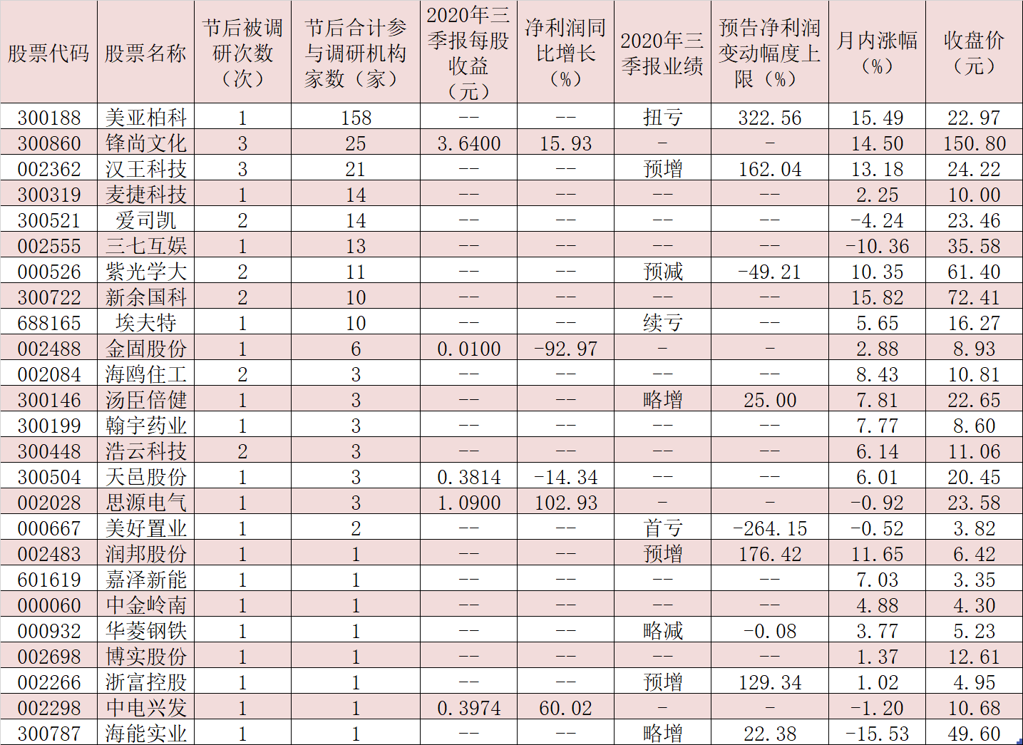 下周如何布局?節(jié)后機構密集調研25家公司,6只三季報預喜股引關注!