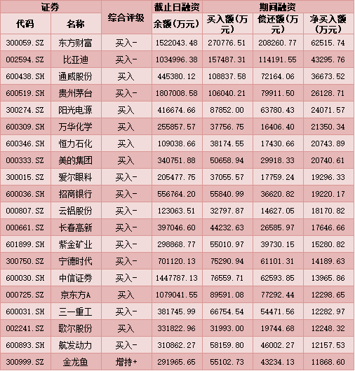 七、2月9日融資凈買入股TOP20
