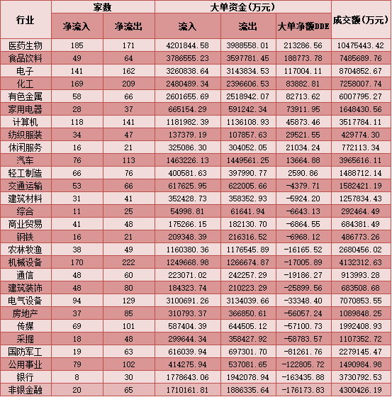二、2月10日申萬一級行業(yè)大單資金流向
