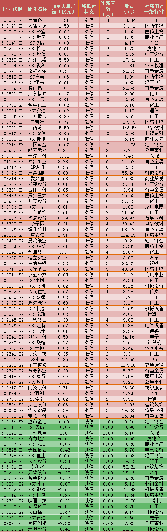 三、2月10日漲跌停股