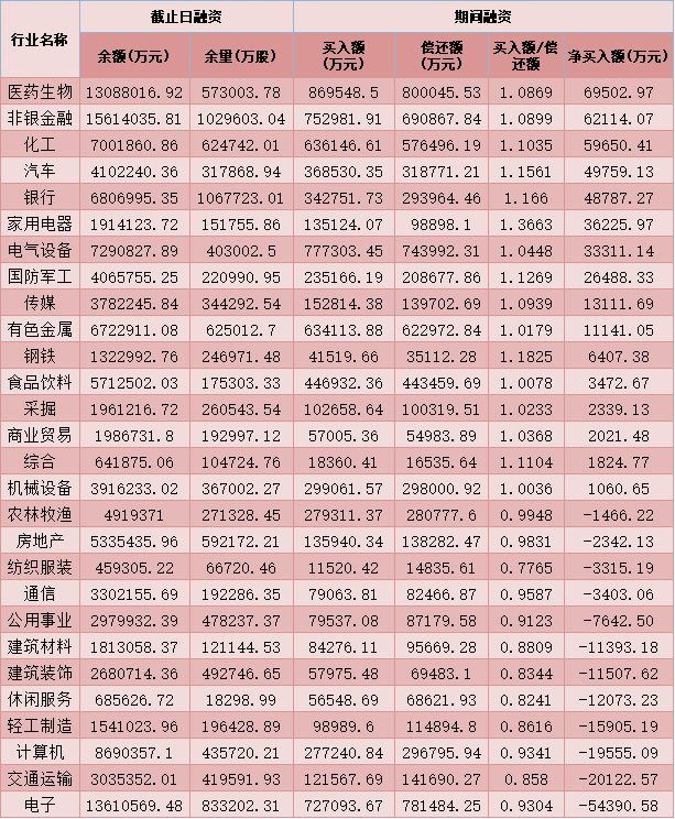 六、2月9日申萬一級行業(yè)兩融交易情況