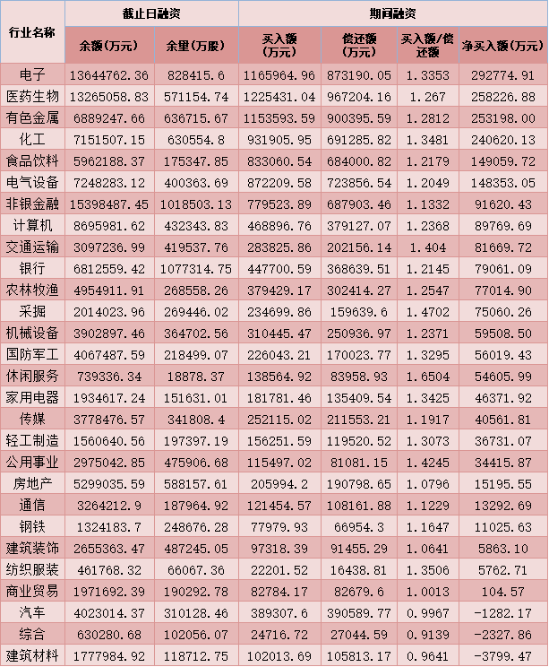 六、2月18日申萬(wàn)一級(jí)行業(yè)兩融交易情況