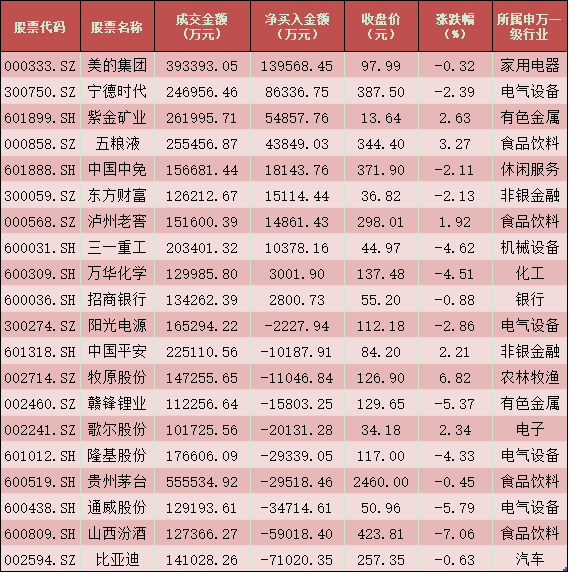 四、周五(2月19日)滬、深股通前十大成交活躍股交易情況