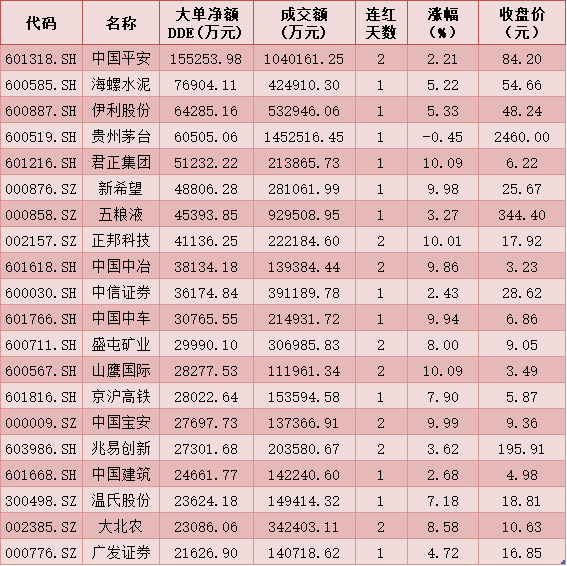 一、周五(2月19日)DDE大單資金凈買(mǎi)入TOP20