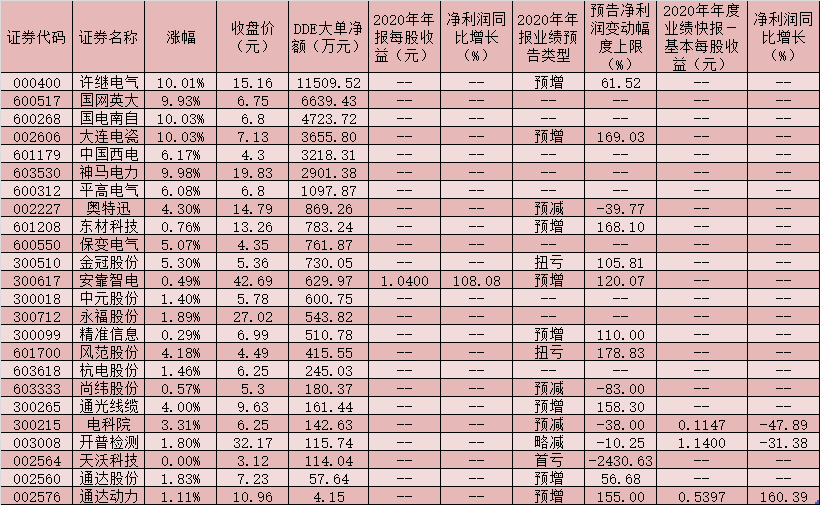 可以看到,年報(bào)業(yè)績(jī)預(yù)期向好也支持著特高壓概念股的良好表現(xiàn)。統(tǒng)計(jì)顯示,截至3月2日收盤(pán),安靠智電已披露了2020年年報(bào)業(yè)績(jī),該公司報(bào)告期內(nèi)實(shí)現(xiàn)凈利潤(rùn)同比增長(zhǎng)108.08%。同時(shí),有9家公司披露了2020年年度業(yè)績(jī)快報(bào),報(bào)告期內(nèi)實(shí)現(xiàn)凈利潤(rùn)同比增長(zhǎng)的公司共有6家,按去年凈利潤(rùn)同比增幅排序分別為:通達(dá)動(dòng)力(160.39%)、思源電氣(69.09%)、長(zhǎng)高集團(tuán)(40.88%)、漢纜股份(40.59%)、金杯電工(28.85%)和川潤(rùn)股份(0.85%)。