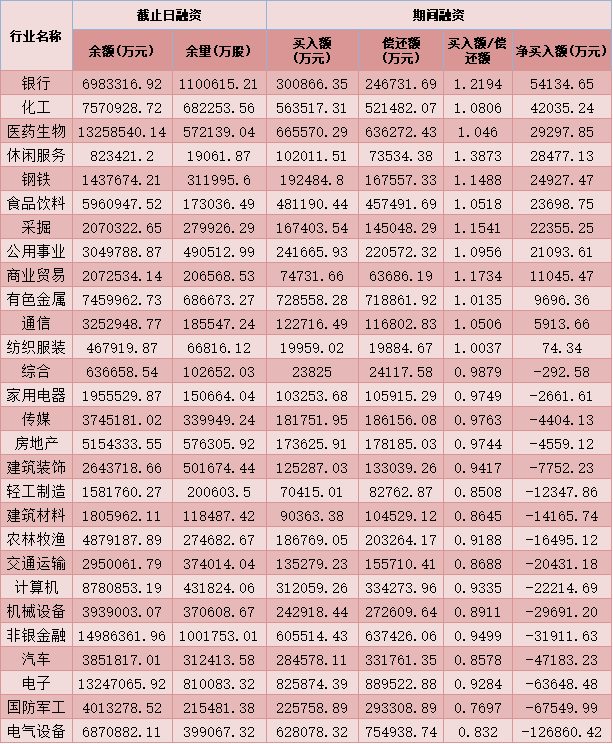 六、3月8日申萬一級(jí)行業(yè)兩融交易情況