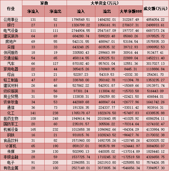 從資金層面看,市場呈大單資金凈流出態(tài)勢,周五,DDE大單凈額流出達(dá)61.85億元。行業(yè)方面,有10類行業(yè)呈凈流入態(tài)勢,前三位分別為:公用事業(yè)(312267.49萬元)、銀行(270637.31萬元)、電氣設(shè)備(197737.46萬元)。