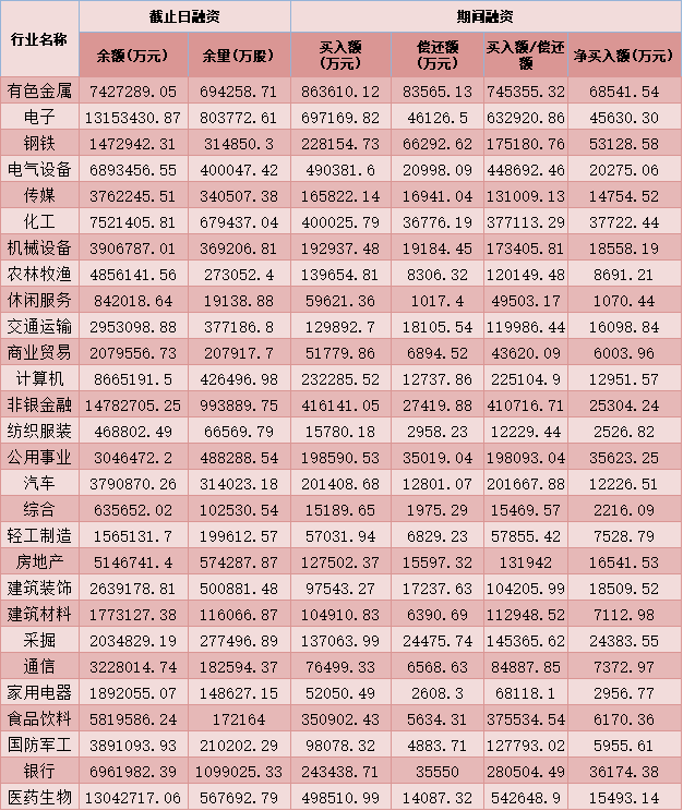 六、3月11日申萬一級行業(yè)兩融交易情況