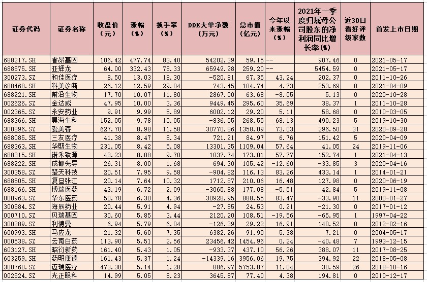 表:5月17日漲幅超5%醫(yī)藥生物股一覽