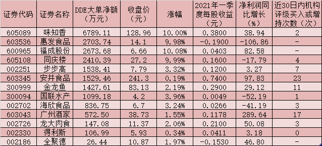 制表:5月18日實(shí)現(xiàn)大單資金凈流入的預(yù)制菜概念股一覽