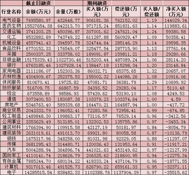 五、截至6月29日申萬一級行業(yè)兩融交易情況