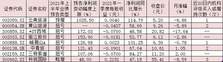 表:已披露上半年業(yè)績預(yù)告且預(yù)喜的旅游股一覽