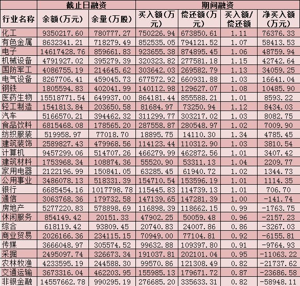 六、截至7月20日申萬一級行業(yè)兩融交易情況