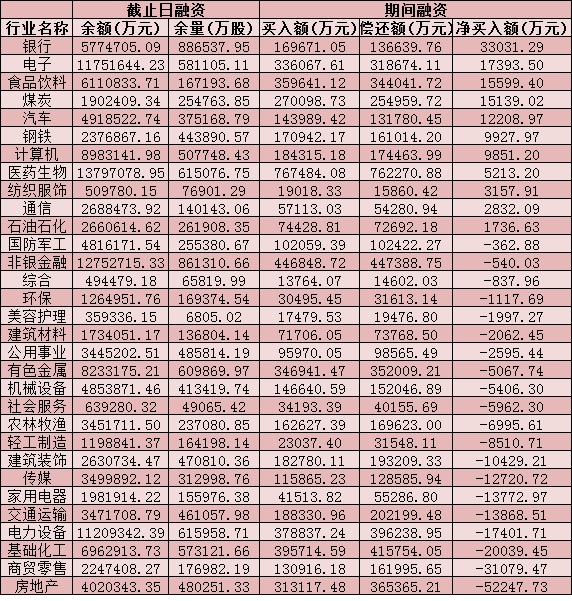 表:4月14日申萬一級行業(yè)兩融交易情況: