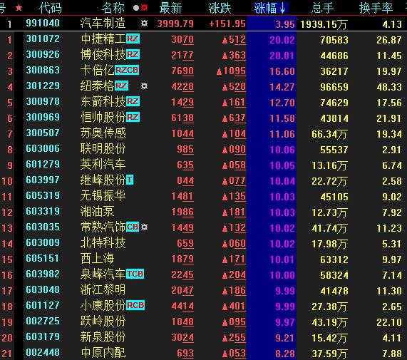 熱點(diǎn)二:汽車(chē)制造板塊飆升近4% 14股漲停