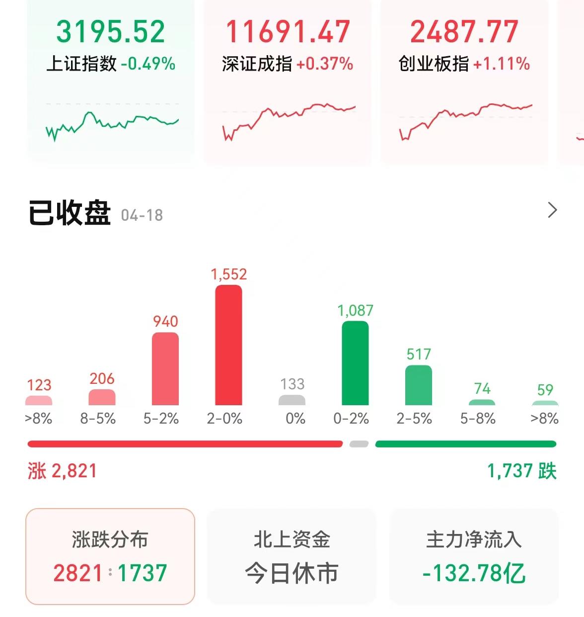 個(gè)股方面,周一,A股漲多跌少,共有2821只個(gè)股實(shí)現(xiàn)上漲,1737只個(gè)股下跌。其中,有92只個(gè)股收于漲停板,跌停個(gè)股有61只。