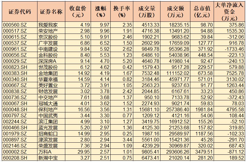 表:11月17日房地產(chǎn)行業(yè)漲幅居前個股一覽