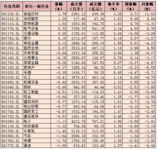 表:12月16日申萬(wàn)一級(jí)行業(yè)指數(shù)表現(xiàn)一覽