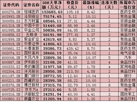 一、周四(12月17日)DDE大單資金凈買入TOP20