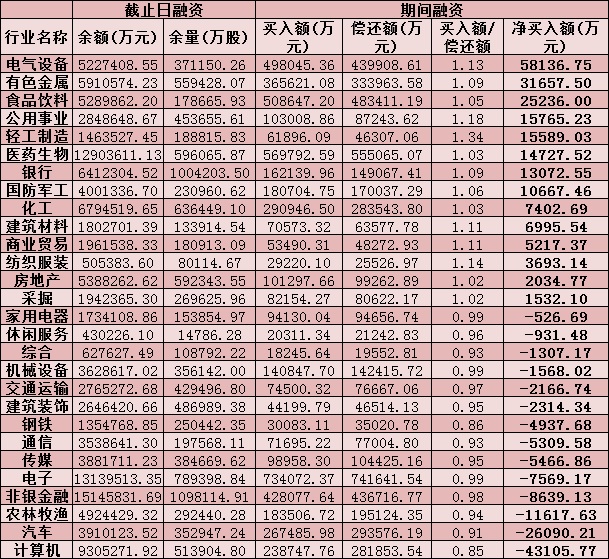 六、截至12月16申萬級一級行業(yè)兩融交易情況