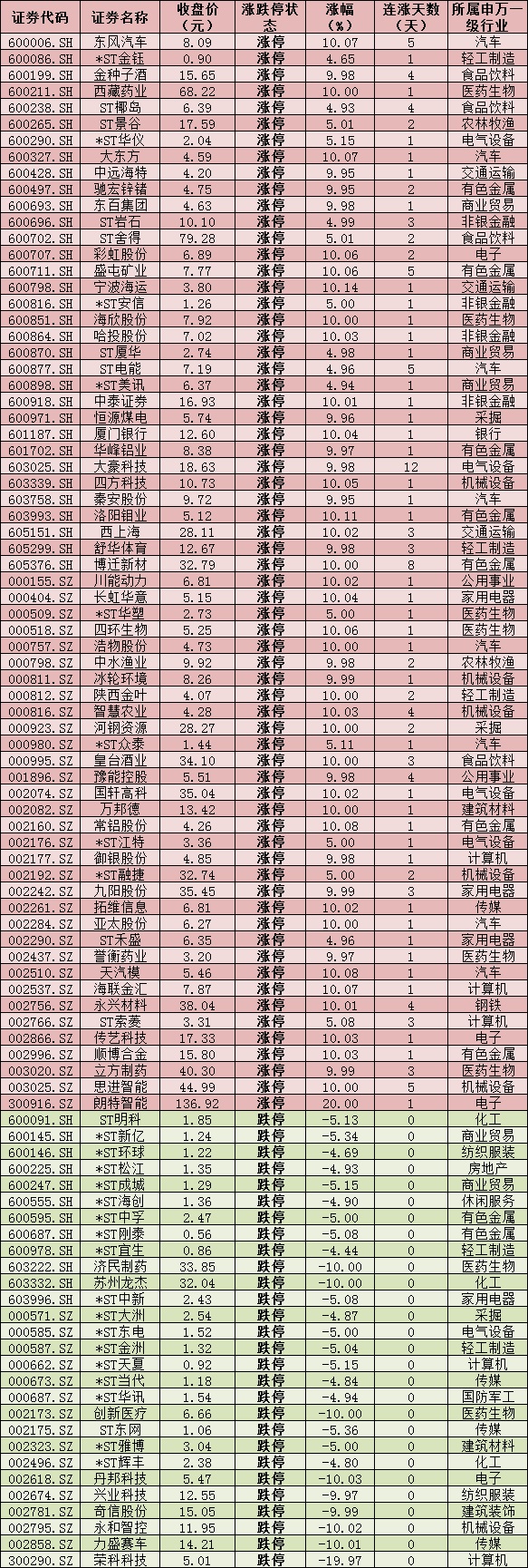 三、周四(12月17日)漲跌停股