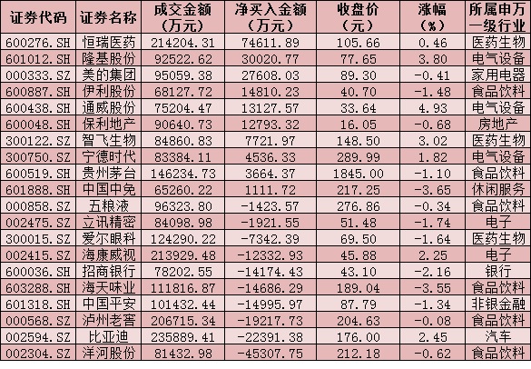 四、周五(12月18日)滬、深股通前十大成交活躍股交易情況