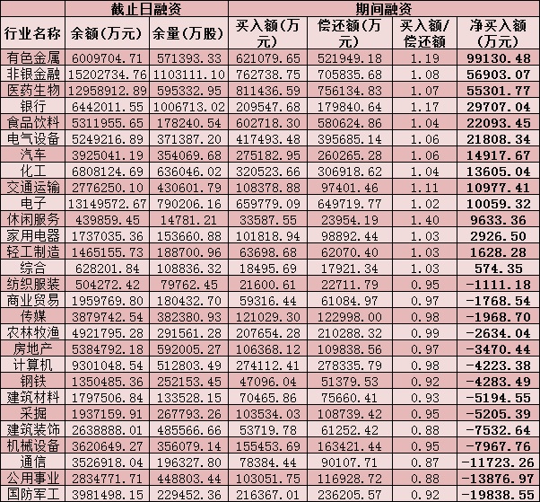 六、截至12月17申萬(wàn)級(jí)一級(jí)行業(yè)兩融交易情況