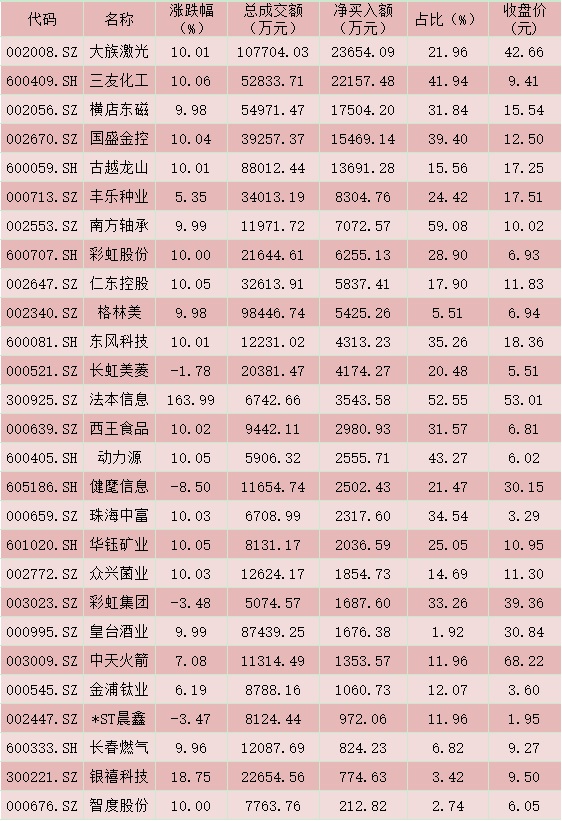 五、周三(12月30日)龍虎榜機構動向